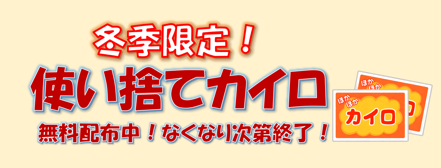 ・配布した使い捨てカイロによる低温やけどなどの怪我、事故、体調不良などは責任を負いかねます。ご自身の責任でご使用ください。